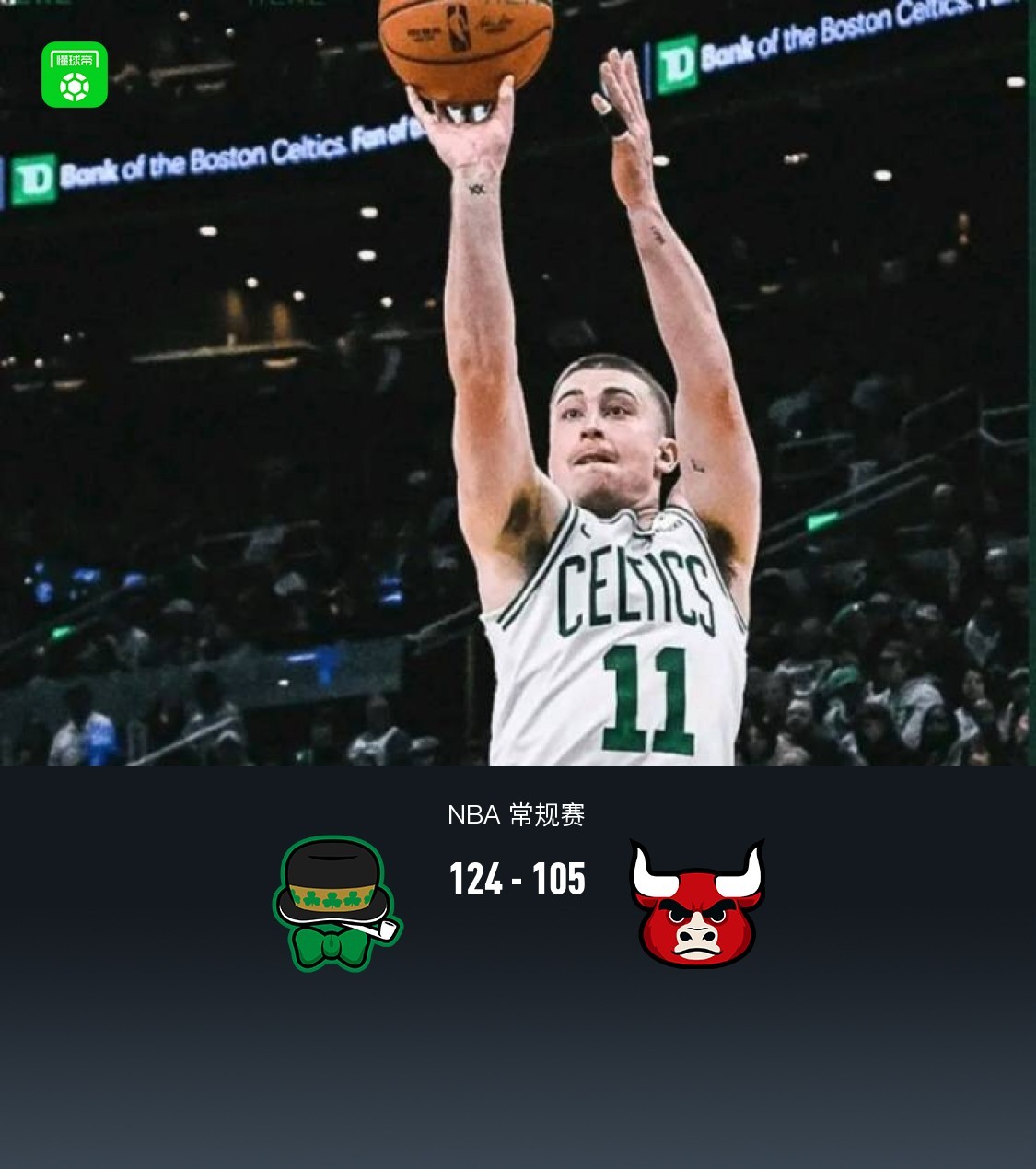 第四节凯尔特人普里查德拿下10分,公牛迪林厄姆拿下7分,最终凯尔特人124-105战胜公牛