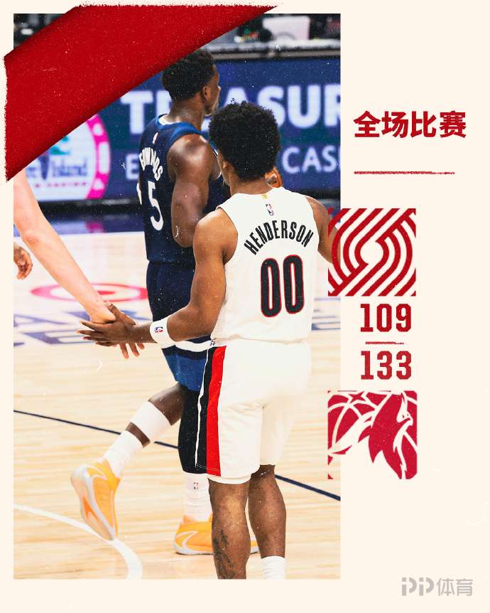 比赛开场,爱德华兹先声夺人,连续命中三分,帮助森林狼建立领先优势,开拓者这边轮换阵容上来后还是连续取分蚕食分差,首节结束森林狼32-26领先。次节回来,开拓者延续追分势头,但很快陷入得分荒,阿夫迪亚状态不佳,森林狼打出一波12-0领先到两位数,半场结束61-51领先。易边再战,森林狼延续外线手感将比分拉开,戈贝尔在内线也是连续造成杀伤,阿夫迪亚则是迟迟找不到状态,三节结束森林狼96-82领先。末节回来,兰德尔连续打成帮助森林狼稳扎稳打维持分差,比赛逐渐失去悬念,杨瀚森登场抢到篮板完成补扣,最终森林狼133-109力克开拓者。