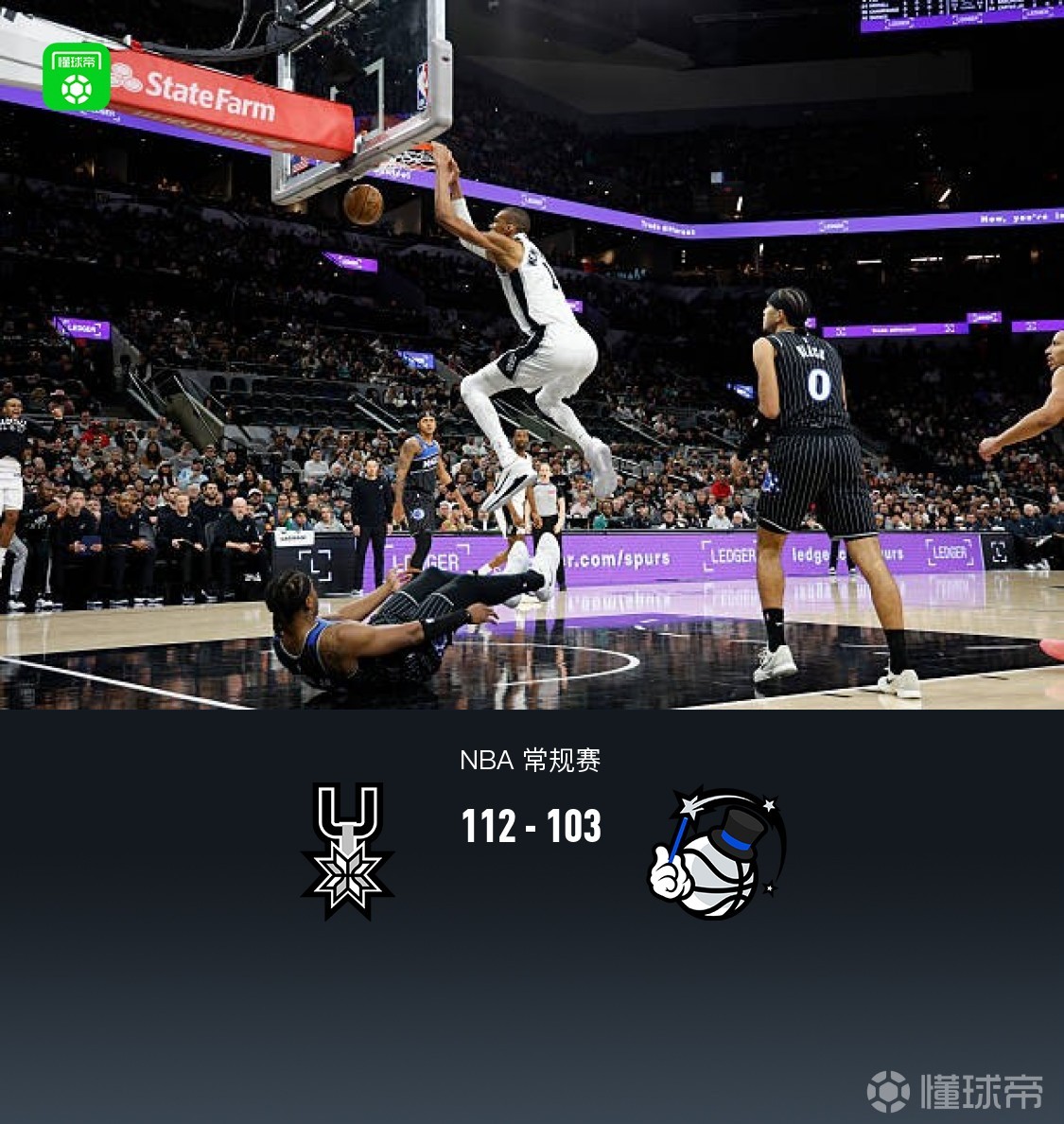 第四节马刺文班亚马拿下7分,魔术贝恩拿下7分,最终马刺112-103战胜魔术