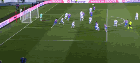 第14分钟,萨尔破门,但是因队友越位在先被判无效