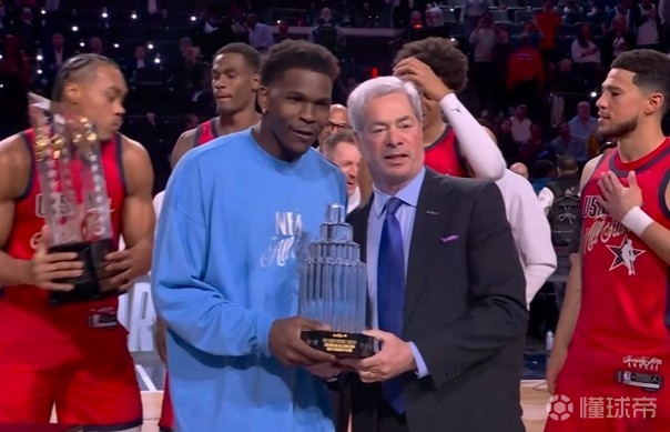 爱德华兹当选全明星MVP(科比-布莱恩特杯),3场比赛他一共拿下32分9板3助。