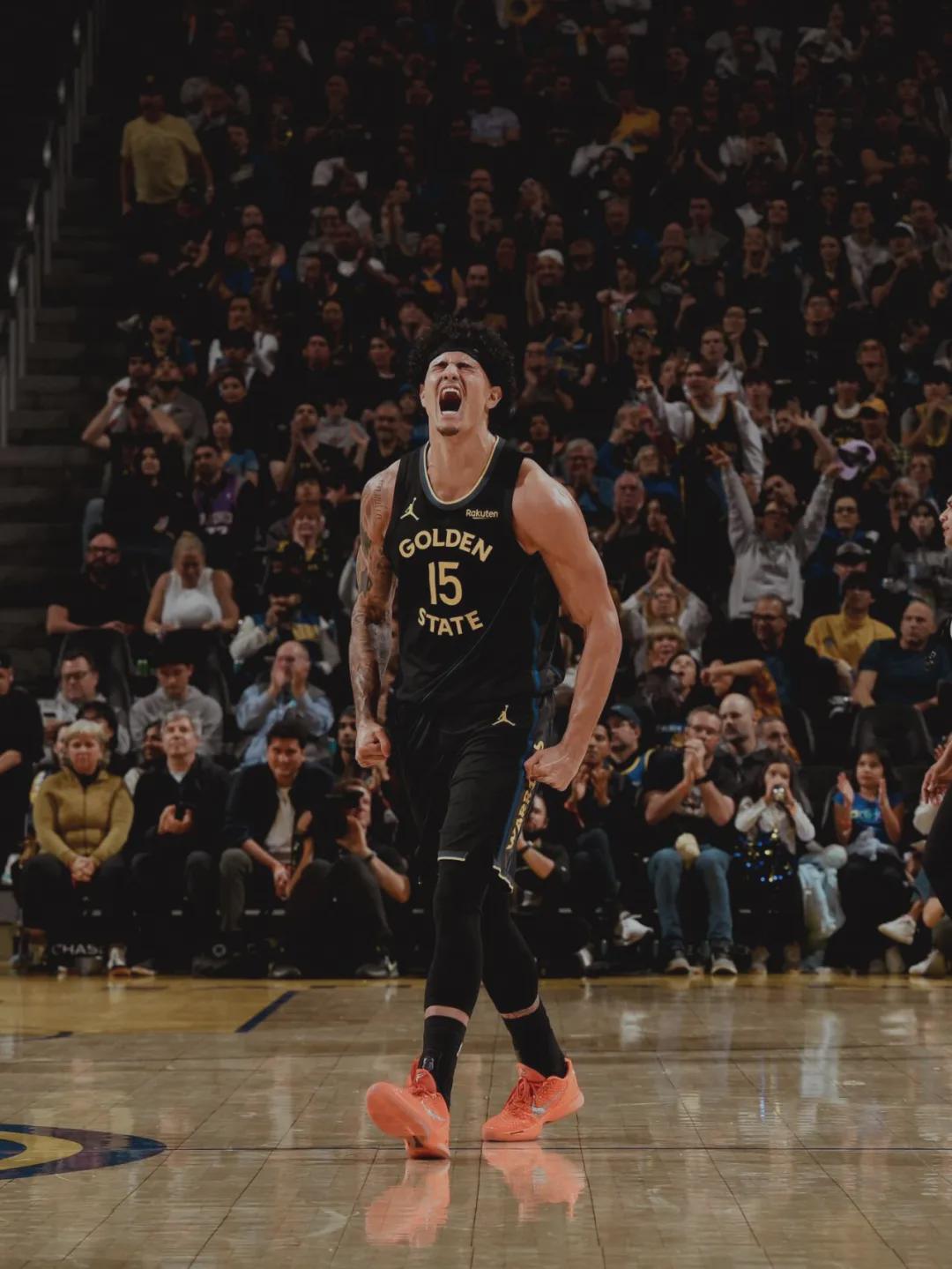 2022年NBA选秀大会,桑托斯在第55顺位被勇士选中,他的起点并不算高。新秀赛季=他一直在发展联盟效力,场均12.7分6板2.2助,直到2023年11月8日,勇士才将其正式签下。2023-24赛季场均出战8.3分钟,仅得2.1分0.6板。