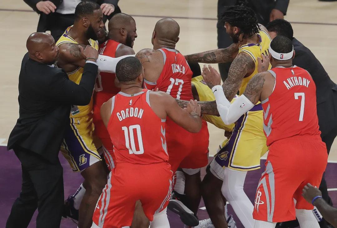 这是最近几年因为打架斗殴,NBA开出的最大罚单。可能有球迷想问2018-19赛季,保罗和英格拉姆以及隆多的打架事件,分别被禁赛多少场?当时英格拉姆被NBA禁赛4场,隆多被禁赛3场,保罗被禁赛2场,并没有这次处罚严重。