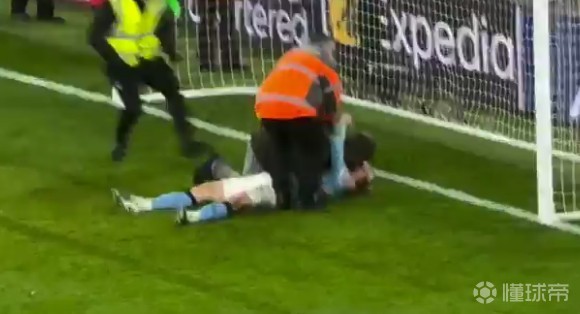 在这粒进球发生的瞬间,哈兰德在利物浦禁区附近被对方球员索博斯洛伊犯规,他顺势躺在草坪上休息。当他正欲起身时,意想不到的是一名球迷突然冲入球场,径直奔向哈兰德并紧紧拥抱了他。安保人员迅速介入,将该球迷拉离球场,确保比赛秩序。