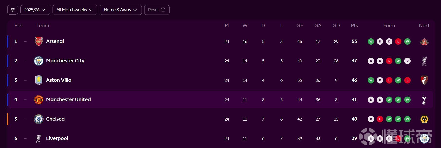曼联在2026年2月1日的英超联赛中主场绝杀富勒姆,卡里克执教后豪取三连胜,球队重返积分榜第四位。目前看来,赛季结束时,单线作战的他们联赛排名可能还将更进一步…….排名第三的阿斯顿维拉将缺席关键球员如:沃特金斯、卡马拉、麦金和蒂勒曼斯——基本上未来几周他们将缺席整个中场,而下轮他们将客场挑战伯恩茅斯。排名第二的曼城在过去6场比赛中仅胜一场——显然他们状态不佳,且下周将对阵利物浦。曼联下周将在老特拉福德迎战热刺——他们伤病累累、状态低迷,老实说就是待宰羔羊。这场比赛必须拿下。没有借口。这同时也是本周的第一场比赛,因此一场胜利能立即给维拉和曼城施加巨大压力。目前势头至关重要,曼联绝不能在这种比赛中丢分。赢下比赛,他们就仅落后维拉2分、落后曼城3分……争四(甚至更高排名)希望真的来了。